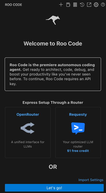 Roo Code settings can now be imported directly from the welcome screen (thanks julionav).